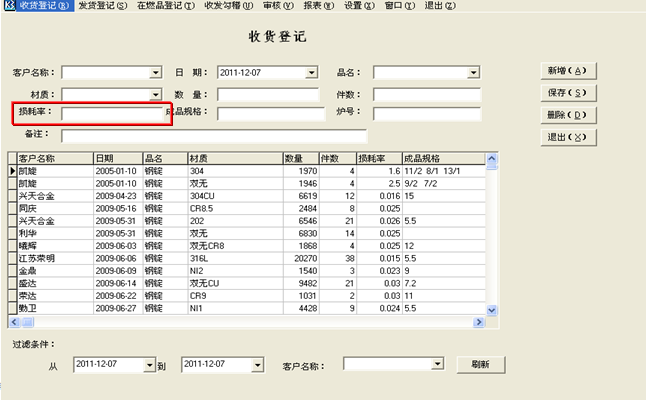 1, 根据加工合同对每笔的收货及损耗率在系统中登记,保证料头结算的准确
