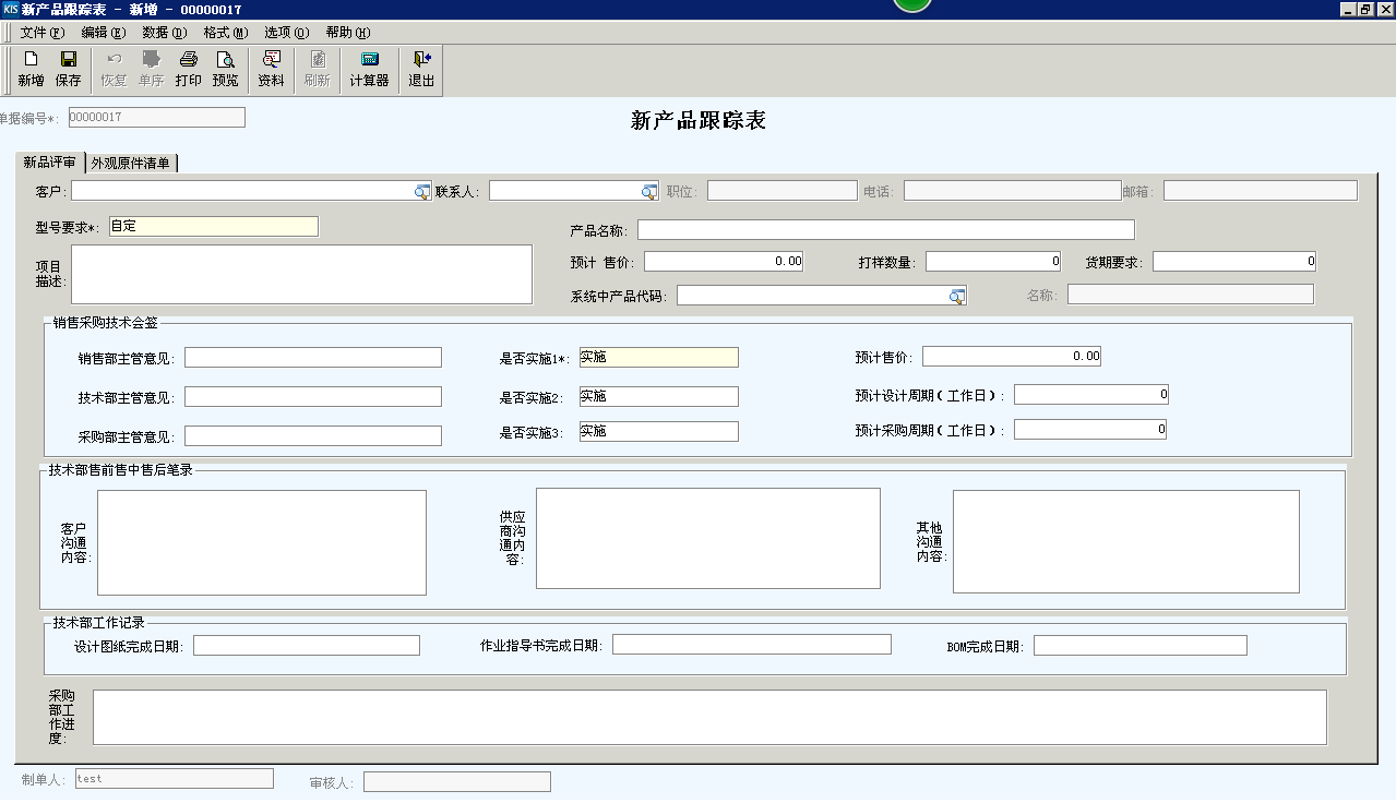 2) 新产品跟踪单在技术部、采购部见的意见、审核、完成时间的跟踪。